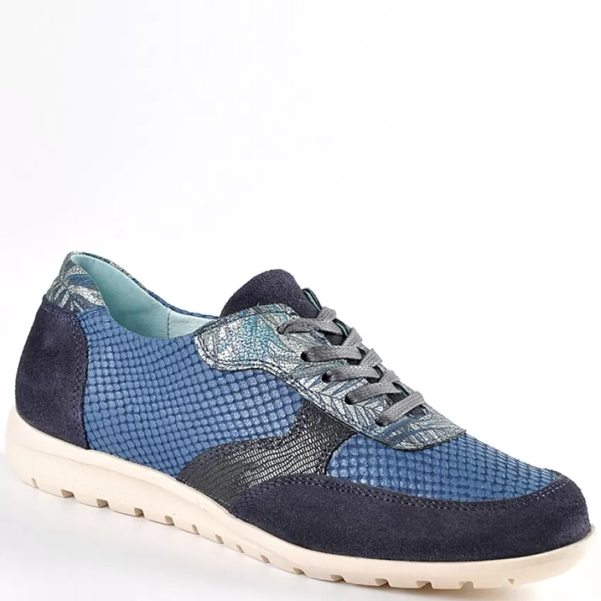 Derbys Bleu: Grand Confort, Forme Large Derbys Femme Confort, Marque Scalina, Coloris Bleu, Dessus En Cuir, Doublure Cuir, Semelle Intérieure Cuir, Semelle Élastomère, Talon 2.5 Cm.