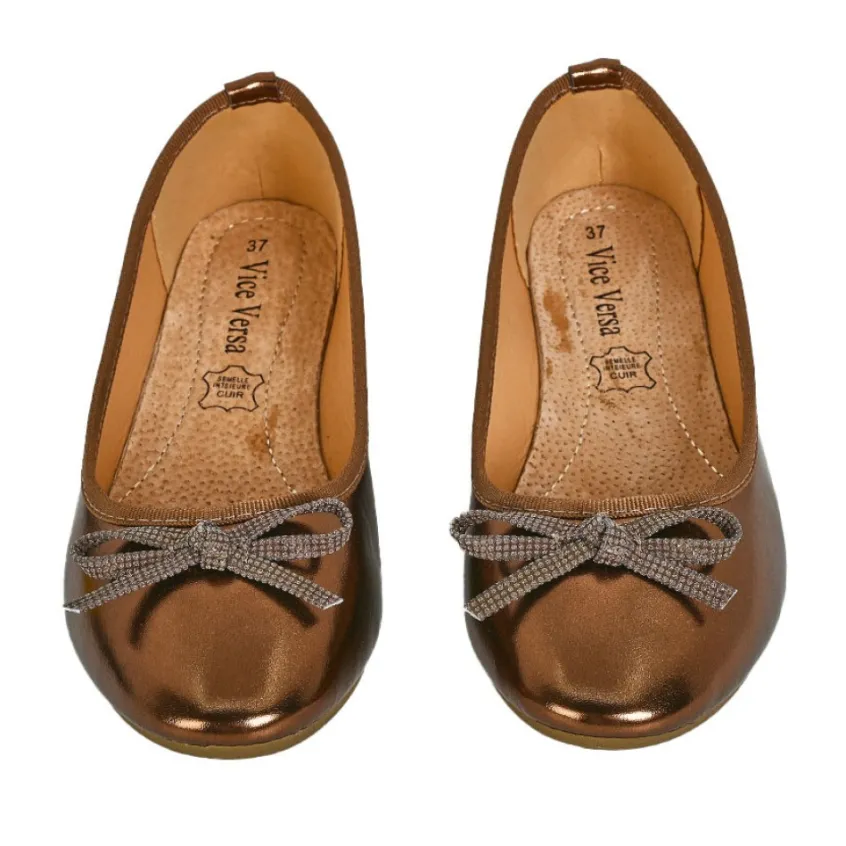 Ballerines Femme Bronze À Nœud Vice Versa: Ballerines Femme, Marque Vice Versa, Coloris Bronze, Dessus En Synthétique, Doublure Synthétique, Semelle Intérieure Cuir, Semelle Élastomère.