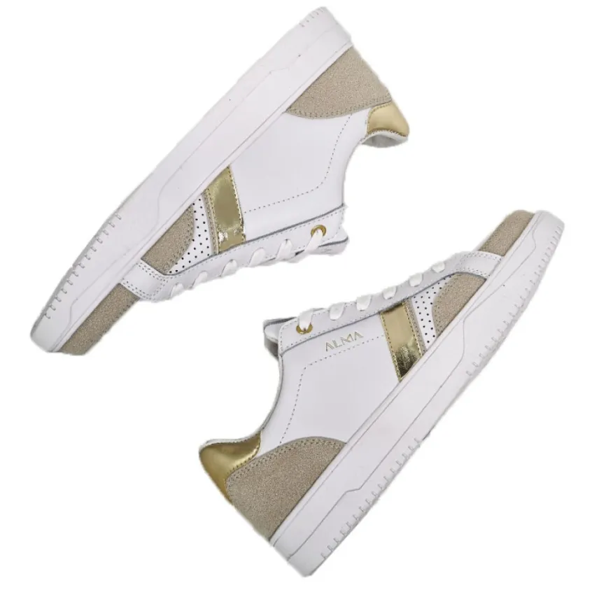 Baskets Femme En Cuir Blanc Alma: Baskets Femme, Marque Alma, Coloris Blanc, Dessus En Cuir, Doublure Cuir Et Textile, Semelle Intérieure Cuir, Semelle Élastomère.