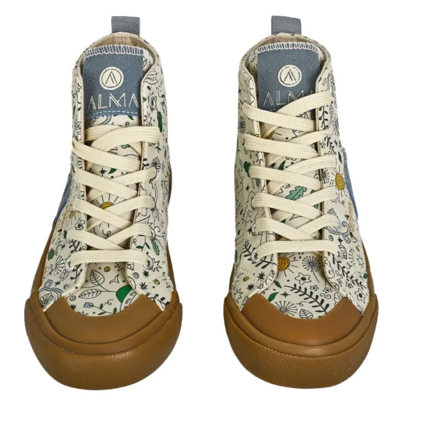 Baskets Montantes Femme Beige À Motifs Alma: Baskets Montantes Femme, Marque Alma Planete, Coloris Beige, Dessus En Synthétique, Doublure Textile, Semelle Intérieure Synthétique, Semelle Élastomère.