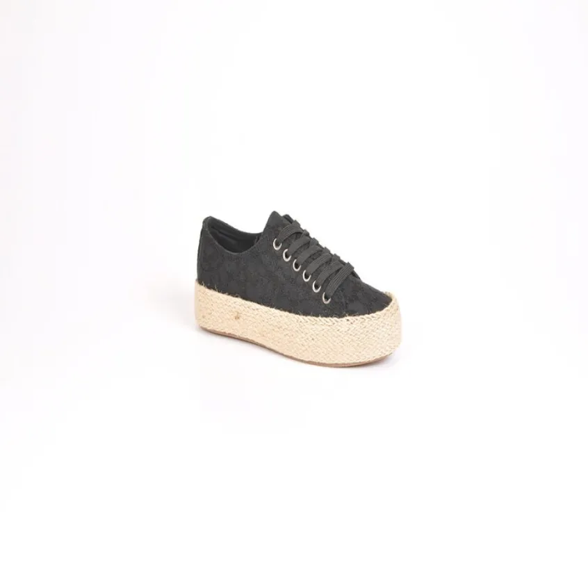 Baskets, Sneakers|STREET LIFE Baskets Femme Dentelle Noire Et Semelle Corde