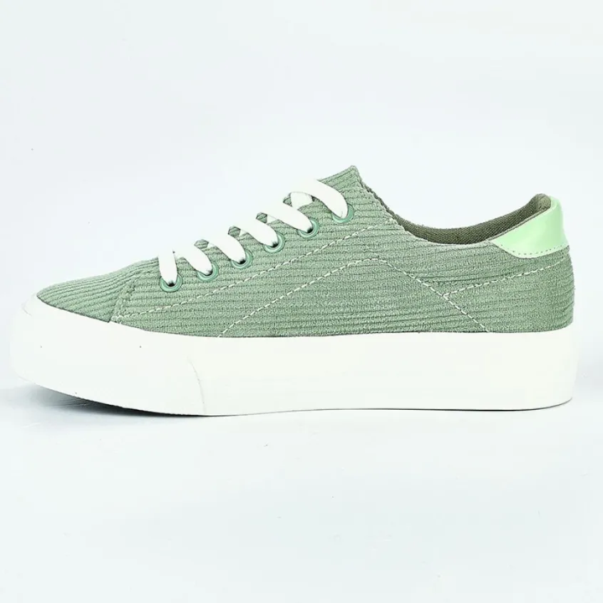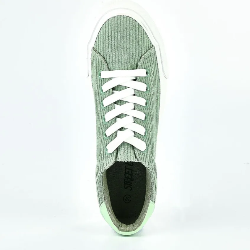 Baskets, Sneakers|STREET LIFE Baskets Femme Vert Velours Cotele