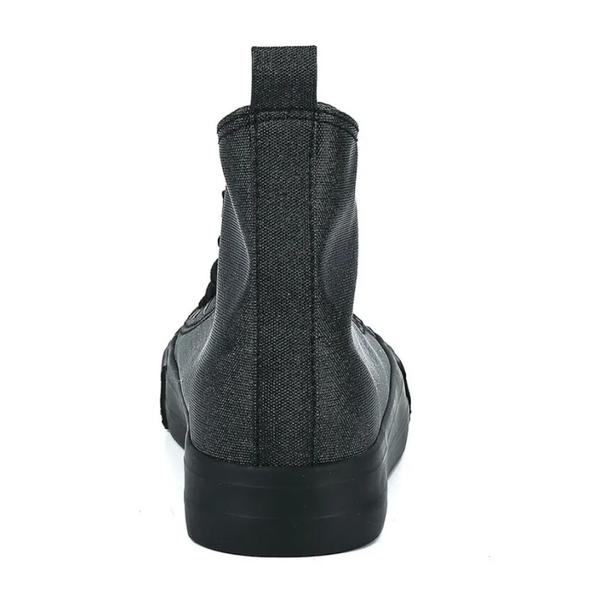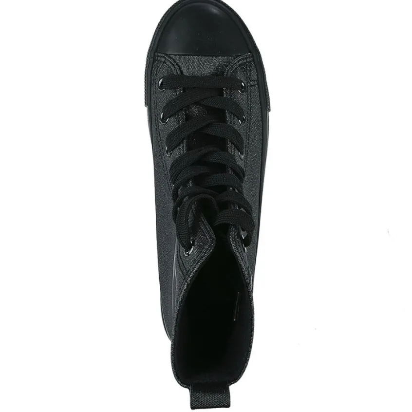 Baskets Montantes Femme En Toile Noire Street Life: Affirmez Votre Personnalité En Optant Pour Ces Baskets Montantes Entièrement Noires Et À La Matière Irisée Qui Scintille À La Lumière ! Elles Se Parent D’Un Bout Renforcé, De Lacets Et D’Une Semelle D’Un Noir Profond. Cette Chaussure En Toile Légère Et Résistante Ne Vous Laissera Pas Tomber ! Sa Semelle Souple Vous Procurera Un Bon Amorti Et Une Adhérence Accrue Au Quotidien.Aucune Faute De Goût N’Est Possible Avec Cette Basket Montante Pour Femme Intemporelle. Elle Se Mariera Avec Tout ! Quant À Sa Coupe Iconique De Chaussures De Skater, Elle Vous Permettra De Jouer Avec Les Styles. Pour Un Look Rock, On Opte Pour Un Denim Blue Et Une Veste En Cuir Noir.Caractéristiques : Dessus En Textile, Doublure Textile, Semelle Intérieure Textile, Semelle Élastomère.