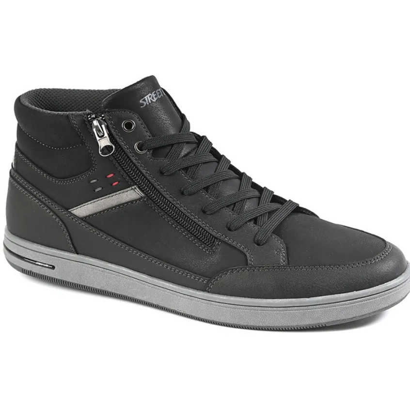 Baskets, Sneakers|STREET LIFE Baskets Montantes Homme Avec Zip Pratique Sur Le Cote Noir
