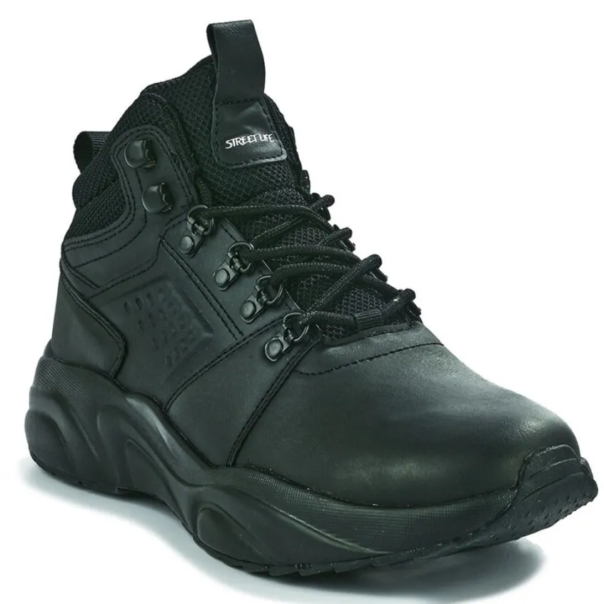 Baskets Montantes Homme Street Life Noir: Baskets Montantes Homme, Marque Street Life, Coloris Noir, Dessus En Synthétique, Doublure Textile, Semelle Intérieure Textile, Semelle Élastomère.