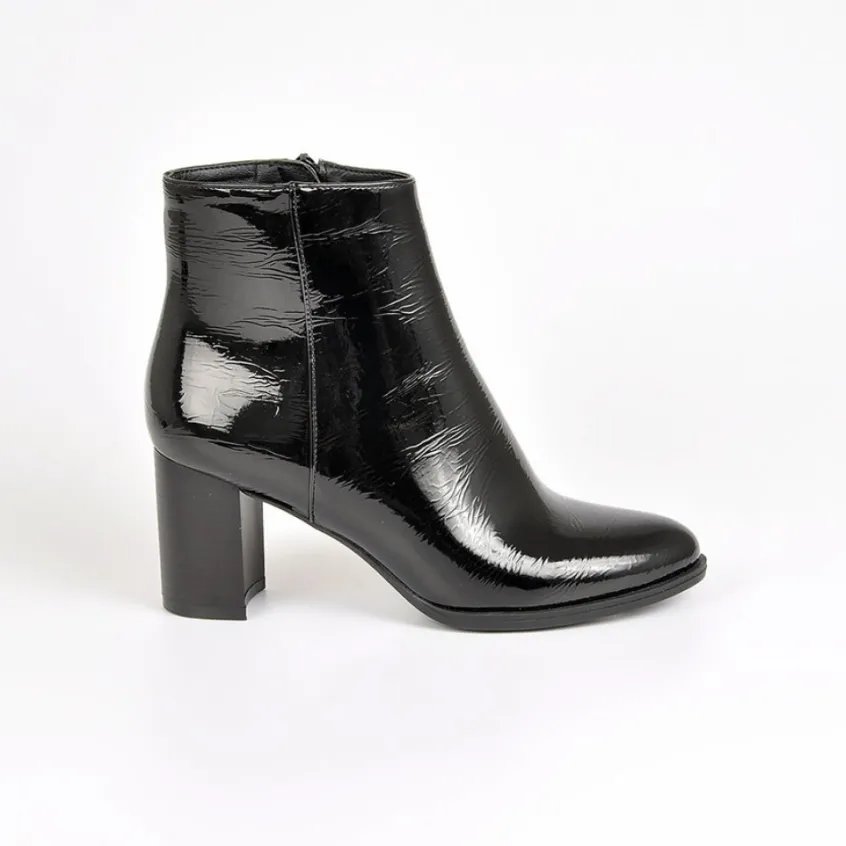 Bottines À Talons Mascara Vernis Noir: Bottines À Talons Femme, Marque Mascara, Coloris Vernis Noir, Dessus En Synthétique, Doublure Textile, Semelle Intérieure Synthétique, Fermeture Avec Zip, Semelle Élastomère, Talon 6.5 Cm.
