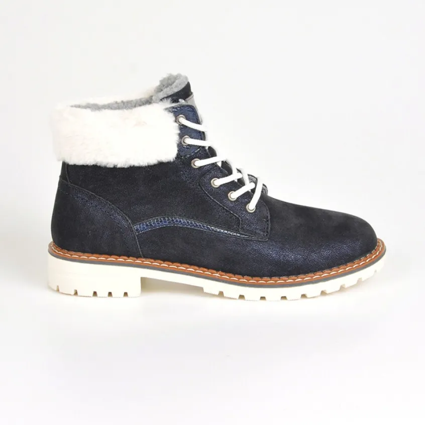 Bottines Plates Avec Col Fausse Fourrure Outshoes Bleu Marine: Bottines Plates Avec Col Fausse Fourrure Femme, Marque Outshoes, Coloris Bleu Marine, Dessus En Synthétique, Doublure Fourrée, Semelle Intérieure Textile, Semelle Élastomère, Talon 3 Cm.