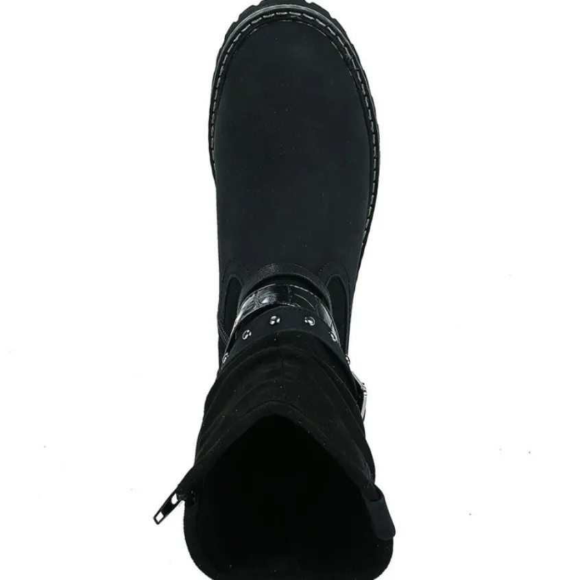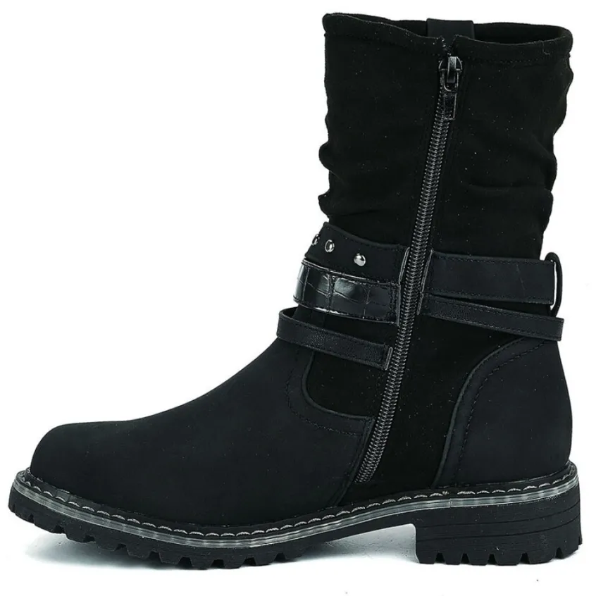Bottines Plates Femme Noir À Brides Outshoes: Pour Aborder La Saison Hivernale Avec Style Et Confort, On Opte Pour Ces Bottines Plates Noires De La Marque Outshoes. Ces Boots Bi-Matières Associent Habilement Une Tige Montante Plissée En Suédine Avec Une Matière Synthétique Sur Le Devant. Le Détail Qui Fait La Différence : Les 3 Brides Au Niveau De La Cheville Qui Mélangent Avec Assurance Les Styles. Tandis Que La Première Se Pare De Clous Et D’Une Boucle À L’Esprit Rock, La Seconde Préfère Jouer La Carte De L’Élégance Avec Un Motif Reptile So Chic ! Une Doublure Fourrée Et Rembourrée Viendra Réchauffer Vos Pieds Tout L’Hiver.Caractéristiques : Dessus En Synthétique, Doublure Fourrée, Semelle Intérieure Fourrée, Fermeture Avec Zip, Semelle Élastomère.