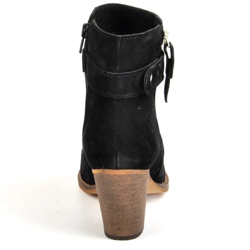 Bottines Femme À Talons Style Western Tipo Alto Noir: Bottines Femme À Talons Style Western, Marque Tipo Alto, Coloris Noir, Dessus En Cuir Velours, Doublure Textile, Semelle Intérieure Cuir, Fermeture Avec Zip, Semelle Élastomère, Talon 6 Cm.