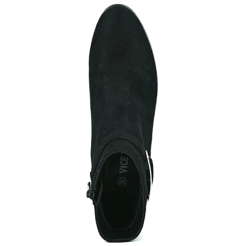 Bottines À Talon Femme Noir À Boucle Vice Versa: Parfaite Pour La Saison Hivernale, Cette Bottine À Talon Vice Versa Est Un Incontournable Absolu Pour Toutes Les Fashionistas En Quête De Tendance. Confectionnée Avec Soin, Cette Bottine Arbore Un Coloris Noir Profond Qui Lui Confère Une Allure Chic Et Intemporelle. Son Dessus En Suédine Ultra-Douce Offre Un Toucher Délicat, Tandis Que Son Talon Carré De 4 Cm, Lui Aussi Revêtu De Cette Matière Rappelant Le Daim, Ajoute Une Touche De Sophistication.Afin De Parfaire Son Esthétisme Raffiné, Cette Bottine Noire Est Sublimée Par Une Délicate Boucle Argentée Qui Orne Sa Tige Montante. Et Pour Couronner Le Tout, Une Fermeture À Glissière Facilite L’Enfilage, Vous Permettant De Les Chausser Rapidement Et Sans Effort. Vous Pourrez Ainsi Vous Concentrer Sur Ce Qui Compte Vraiment : Affirmer Votre Style Avec Confiance.Caractéristiques : Dessus En Synthétique, Doublure Textile, Semelle Intérieure Synthétique, Fermeture Avec Zip, Semelle Élastomère, Talon 4 Cm.