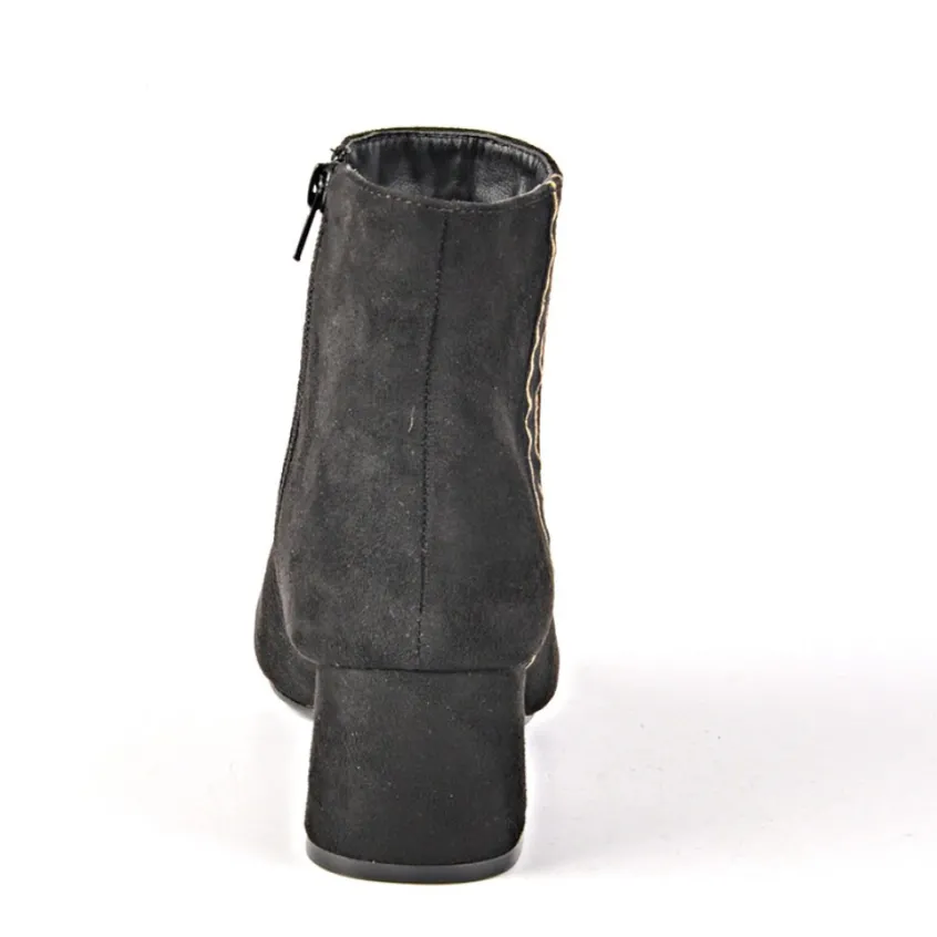 Bottines À Talons Aspect Velours Noir: Bottines À Talons Aspect Velours Femme, Marque Vice Versa, Coloris Noir, Dessus En Synthétique, Doublure Textile, Semelle Intérieure Synthétique, Fermeture Avec Zip, Semelle Élastomère.