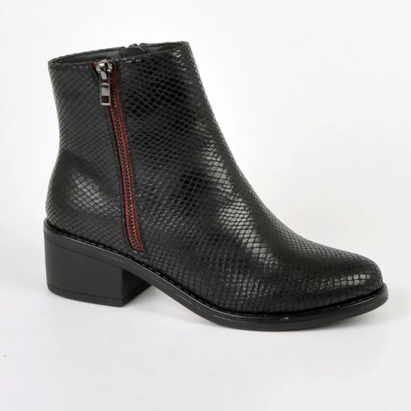 Bottines À Talons Avec Effet Reptile Vice Versa Noir: Bottines À Talons Avec Effet Reptile Femme, Marque Vice Versa, Coloris Noir, Dessus En Synthétique, Doublure Textile, Semelle Intérieure Synthétique, Fermeture Avec Zip, Semelle Élastomère, Talon 4 Cm.