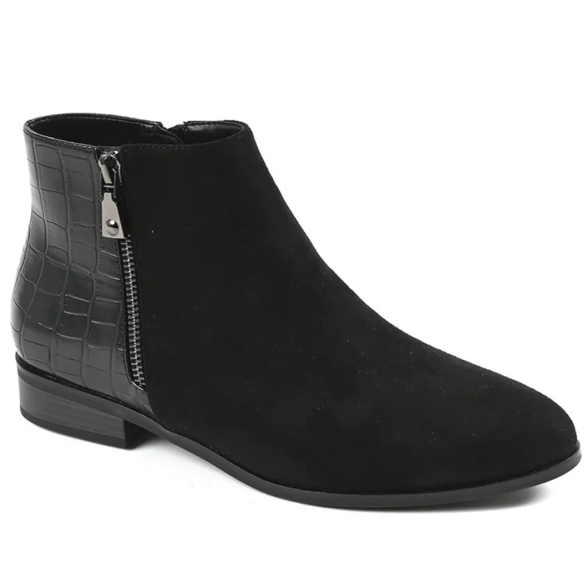 Bottines Plates Avec Effet Croco Vice Versa Noir: Bottines Plates Avec Effet Croco Femme, Marque Vice Versa, Coloris Noir, Dessus En Synthétique, Doublure Synthétique Et Textile, Semelle Intérieure Synthétique, Fermeture Avec Zip, Semelle Élastomère.