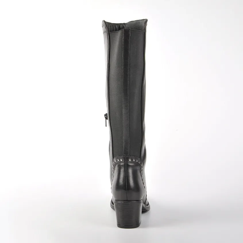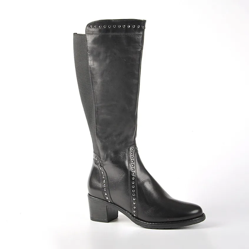 Bottes À Talons Avec Élastiques Tipo Alto Noir: Bottes À Talons Avec Élastiques Femme, Marque Tipo Alto, Coloris Noir, Dessus En Cuir, Doublure Textile, Semelle Intérieure Cuir, Fermeture Avec Zip, Semelle Élastomère, Talon 5 Cm, Hauteur De Tige 35 Cm, Tour De Mollet 32 Cm.