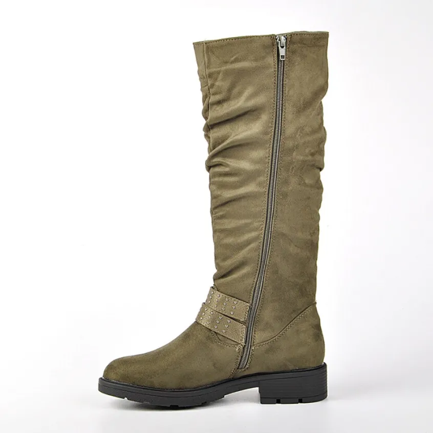 Bottes, Cuissardes|VICE VERSA Bottes Plates Femme Kaki Avec Boucle