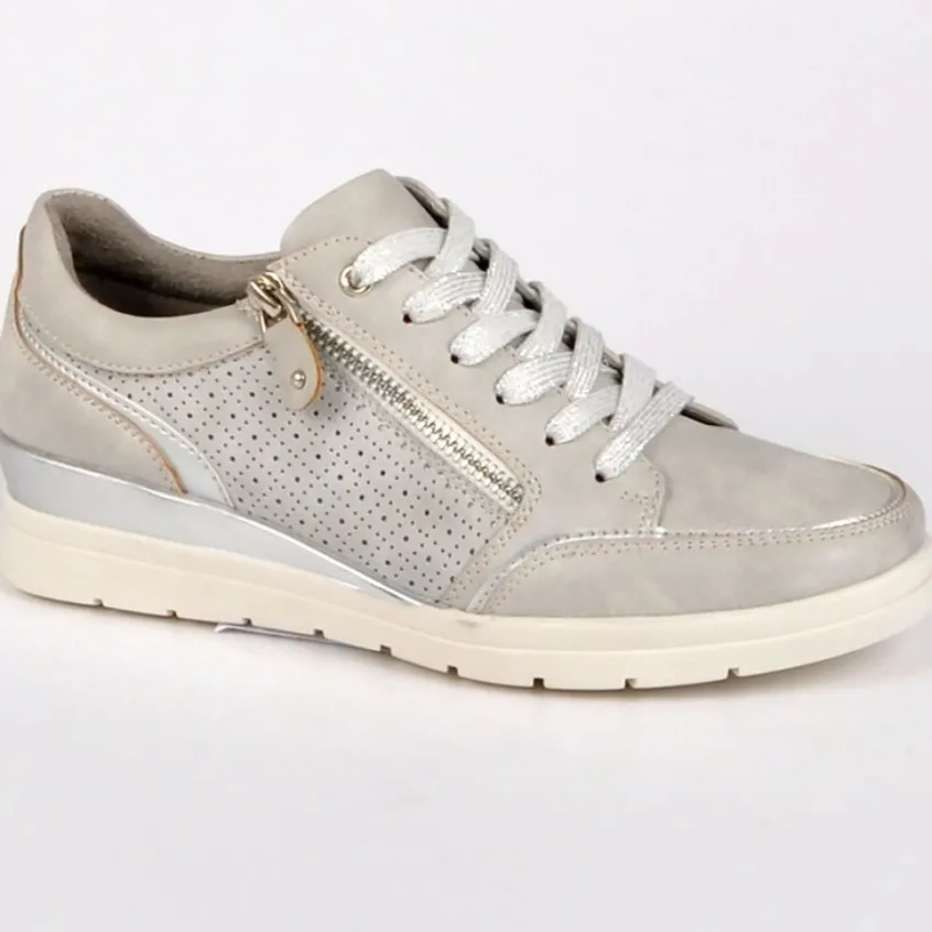 Chaussures Confort|LADY CONFORT Baskets Avec Zip Pratique Sur Le Cote Gris
