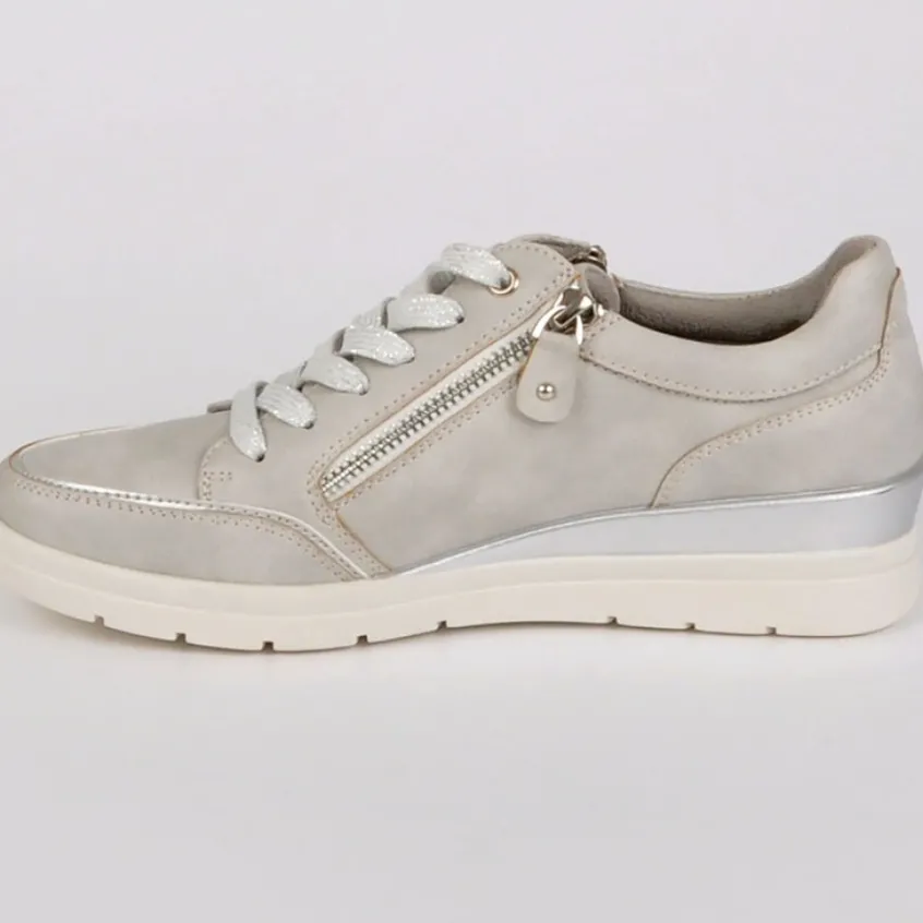 Baskets Avec Zip Pratique Sur Le Côté Lady Confort Gris: Grand Confort, Forme Large Baskets Avec Zip Pratique Sur Le Côté Femme Confort, Marque Lady Confort, Coloris Gris, Dessus En Synthétique, Doublure Textile, Semelle Intérieure Cuir, Fermeture Avec Zip, Semelle Élastomère, Talon Compensé 2 Cm, Plateforme Intégrée 2 Cm.