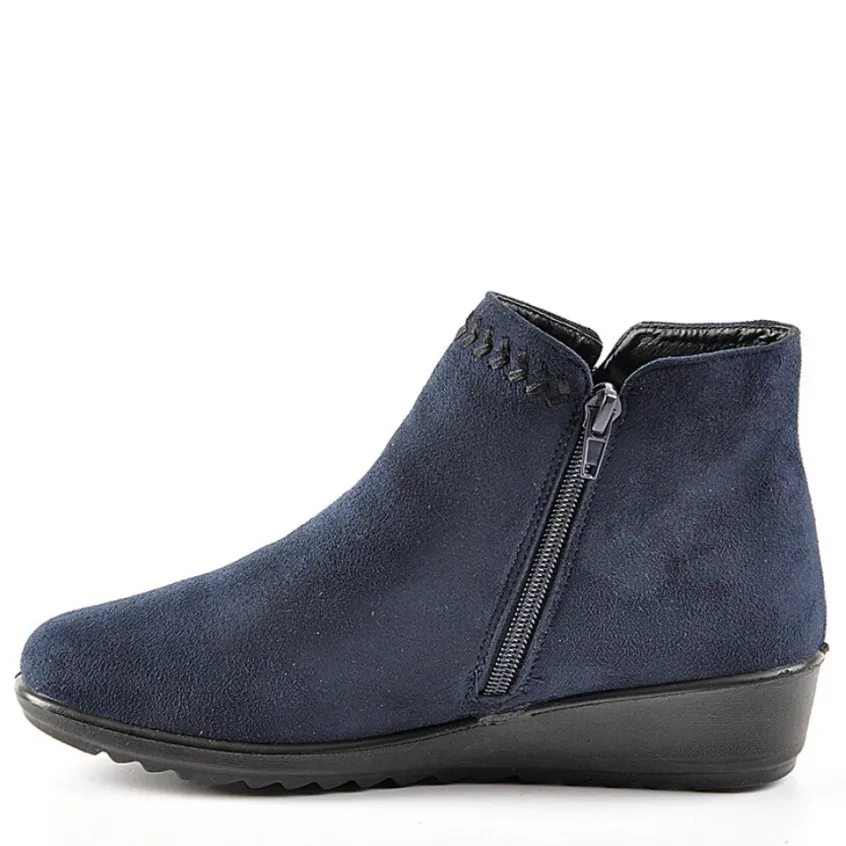 Bottines Compensées Aspect Velours Lady Confort Bleu Marine: Grand Confort, Forme Large Bottines Compensées Aspect Velours Femme Confort, Marque Lady Confort, Coloris Bleu Marine, Dessus En Synthétique, Doublure Textile, Semelle Intérieure Synthétique, Fermeture Avec Zip, Semelle Élastomère, Talon 3 Cm.