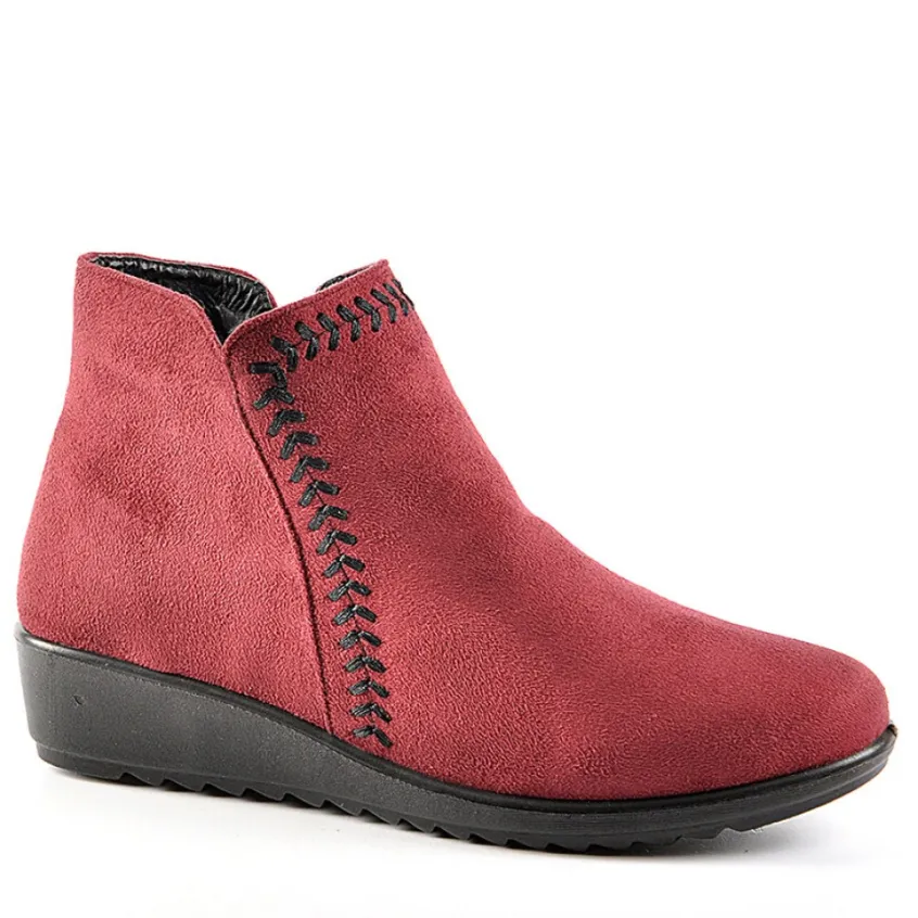 Bottines Compensées Aspect Velours Lady Confort Bordeaux: Grand Confort, Forme Large Bottines Compensées Aspect Velours Femme Confort, Marque Lady Confort, Coloris Bordeaux, Dessus En Synthétique, Doublure Textile, Semelle Intérieure Synthétique, Fermeture Avec Zip, Semelle Élastomère, Talon 3 Cm.