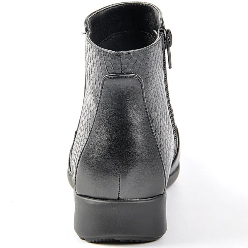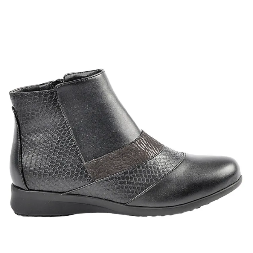 Bottines Compensées Avec Effet Reptile Lady Confort Noir: Grand Confort, Forme Large Bottines Compensées Avec Effet Reptile Femme Chaussures Confort, Marque Lady Confort, Coloris Noir, Dessus En Synthétique, Doublure Textile, Semelle Intérieure Cuir, Fermeture Avec Zip, Semelle Élastomère, Talon 3 Cm.