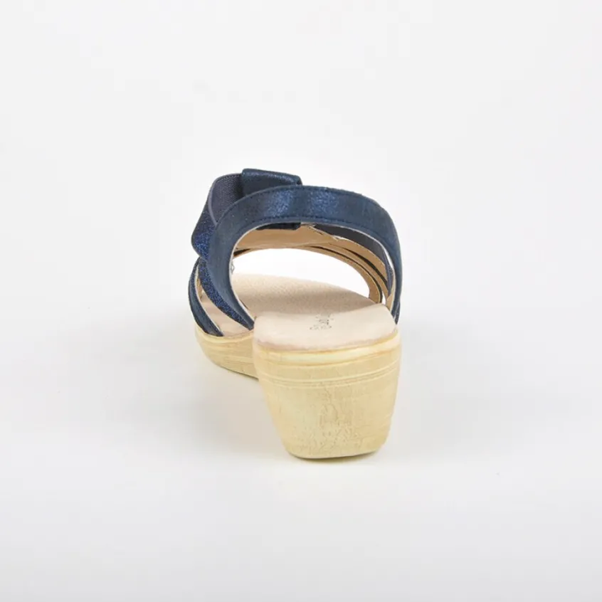 Sandales Compensées Avec Strass Lady Confort Bleu Marine: Grand Confort, Forme Large Sandales Compensées Avec Strass, Sandales Femme Confort, Marque Lady Confort, Coloris Bleu Marine, Dessus En Synthétique, Doublure Synthétique, Semelle Intérieure Cuir, Semelle Élastomère, Talon 5 Cm.