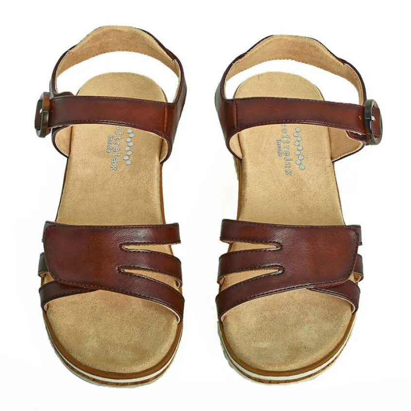 Chaussures Confort|LADY CONFORT Sandales Plates Femme Marron