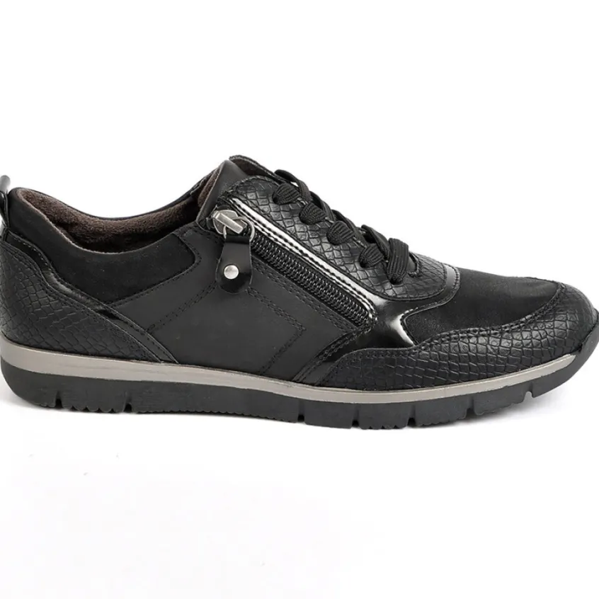 Chaussures Confort|RELIFE Baskets Femme Noir Avec Effet Python