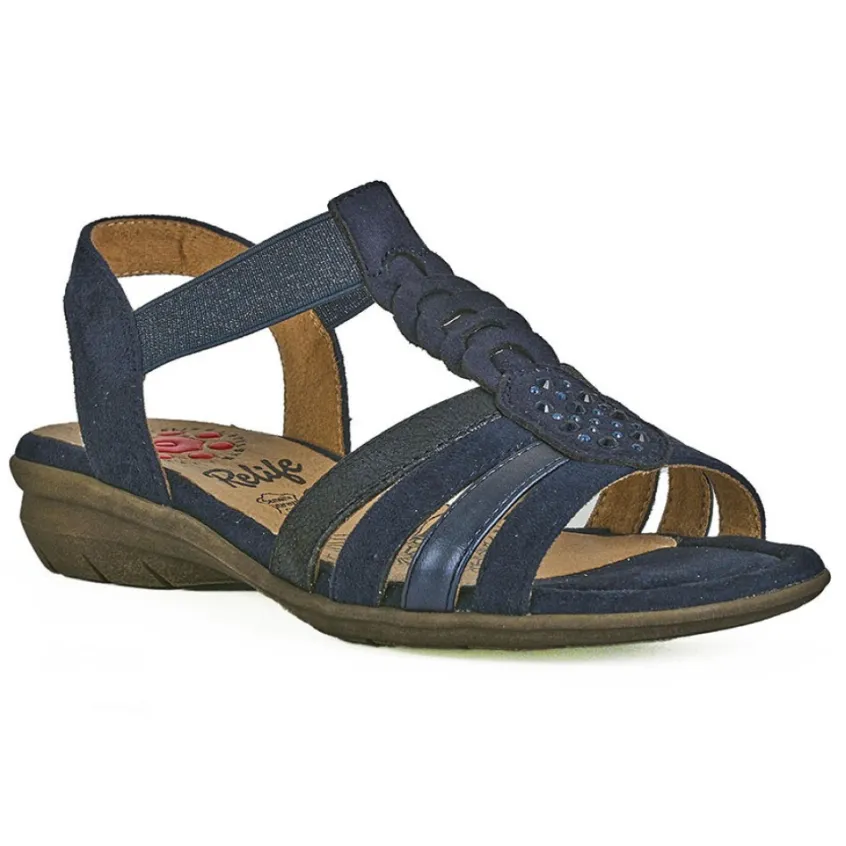 Chaussures Confort|RELIFE Sandales Plates Avec Strass Bleu