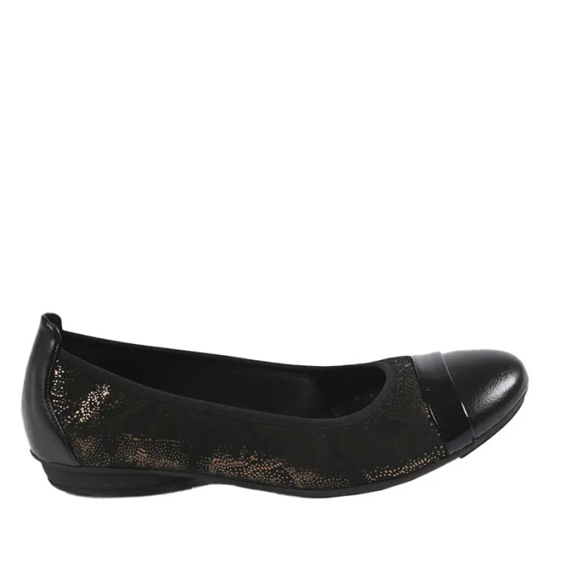 Chaussures Confort|SCALINA Ballerines Femme Bi-Matieres Noir Et Dore