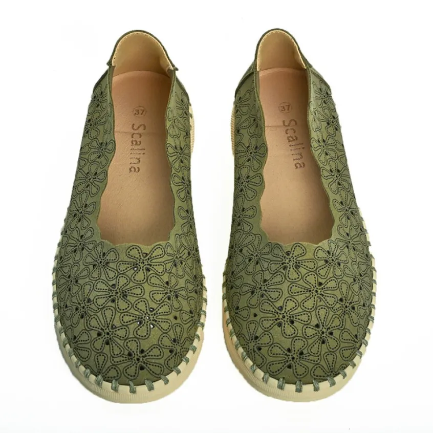 Chaussures Confort|SCALINA Ballerines Femme Kaki