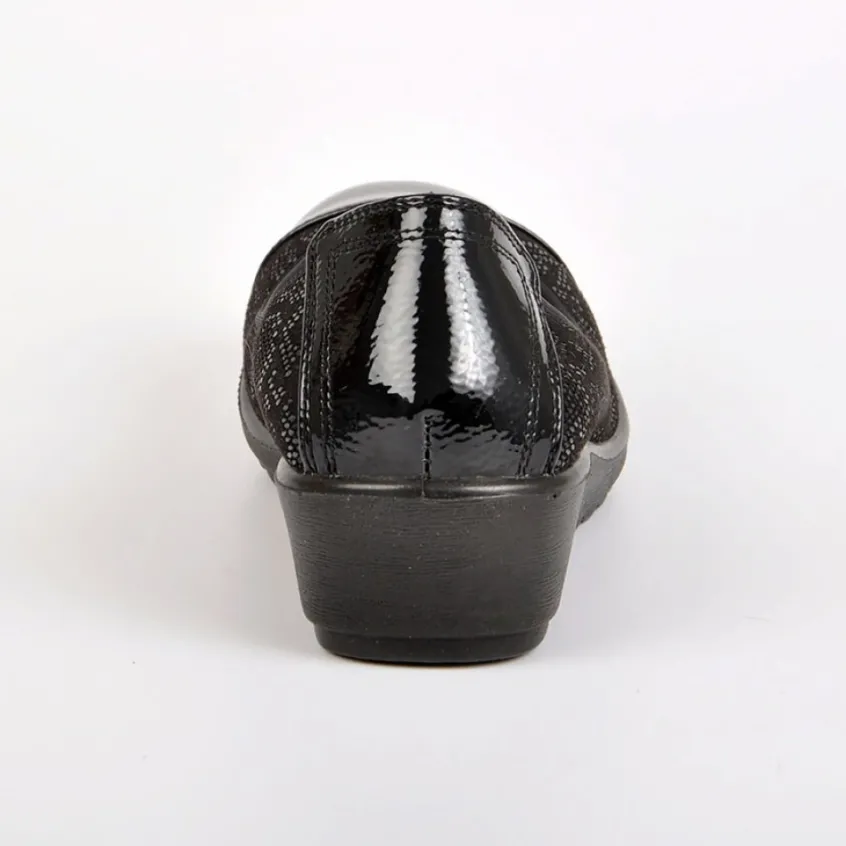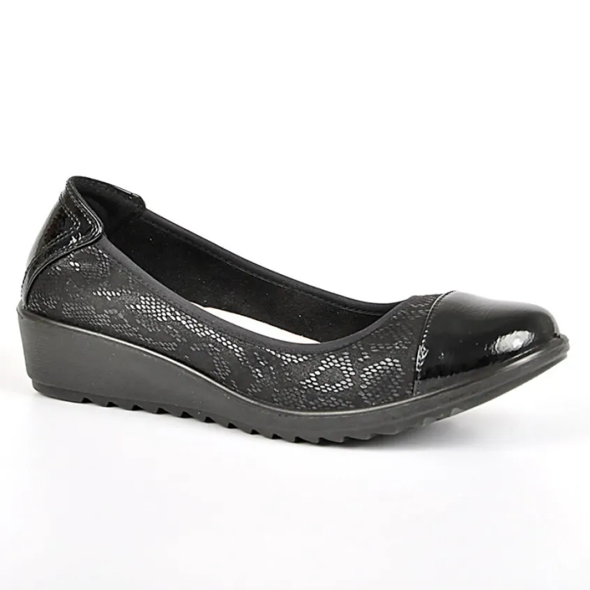 Ballerines Femme Noir Ultra-Léger Lady Confort: Succombez Au Charme De Ces Séduisantes Ballerines Noires Effet Python Qui Allient Confort Et Style. Ces Chaussures À La Forme Large Et Au Talon Compensé De 3,5 Cm Vous Assureront Un Confort Sans Pareil. Aussi Agréable À Porter Que Des Chaussons, Ce Modèle Ultra-Léger De La Marque Lady Confort Est Muni D’Une Semelle Intérieure Cuir.Pour Toujours Plus De Chic, Cette Ballerine Noire Se Pare D’Empiècements Vernis À L’Avant Et À L’Arrière. Quant À Son Imprimé Python Brillant, Il Vous Conférera Un Style Chic Et Intemporel. Pour Couronner Le Tout, Ces Ballerines Pour Femmes Confortables Sont Équipées D’Une Semelle Crantée Pour Une Meilleure Adhérence.Caractéristiques : Dessus En Synthétique Et Textile, Doublure Textile, Semelle Intérieure Cuir, Semelle Élastomère, Talon 3.5 Cm.