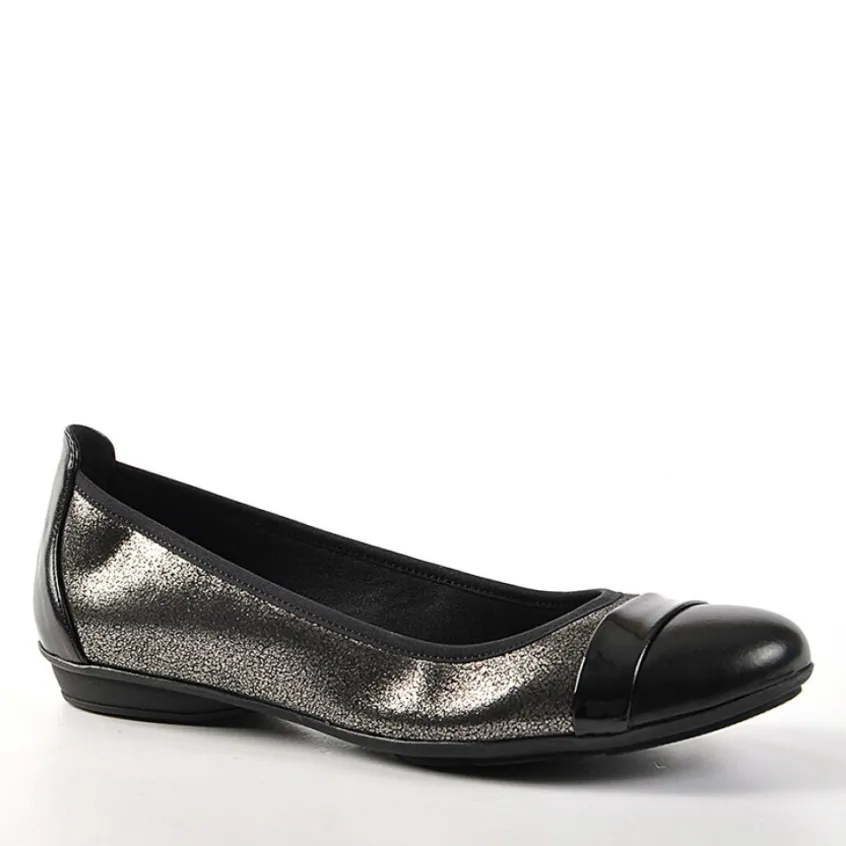 Ballerines Femme Noires Et Argentées Semelles Souples Scalina: Suivez La Tendance Des Coloris Métalliques Et Irisés En Adoptant Cette Paire De Ballerines Noires Et Argentées De La Marque Scalina. Réhaussée D’Une Lanière Et D’Un Empiècement Verni Noir Qui Tranche Avec Le Coloris Argent De La Tige, La Traditionnelle Ballerine Pour Femme Est Revisitée Dans Des Coloris Plus Actuels.Légères Et Agréables À Porter Grâce À Leur Semelle Ultra Souple, Ces Ballerines Noires Se Porteront Facilement Avec Toutes Vos Tenues De La Saison. Leur Semelle Intérieur En Cuir Moelleuse Et Respirante Vous Permettra De Garder Les Pieds Frais Et Reposés.Caractéristiques : Semelles Souples Confort, Marque Scalina, Coloris Noir, Dessus En Synthétique, Doublure Textile, Semelle Intérieure Cuir, Semelle Élastomère.