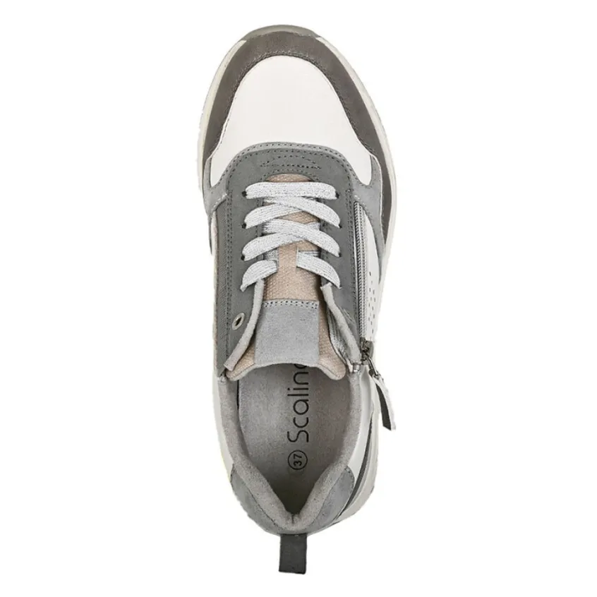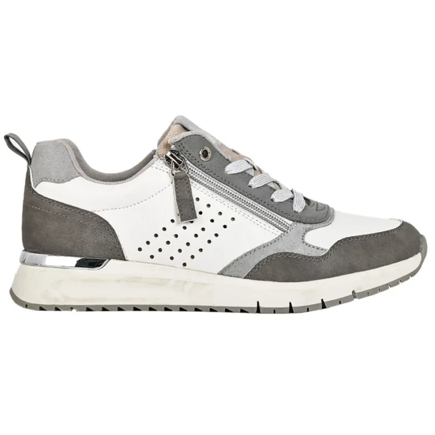 Baskets Confort Femme Blanc Fermeture Éclair Scalina: Avec Son Design Moderne Et Féminin Et Son Grand Confort, Cette Paire De Baskets Blanches Et Grises Scalina Ravira Les Coquettes Aux Pieds Sensibles. Découvrez Nos 5 Bonnes Raisons De Les Adopter : • Leur Tige Blanche Aux Empiècements Gris Contrastants Et Aux Perforations À L’Esprit ‘sport’. • L’Insert Argenté Scintillant Qui Orne Le Talon. • Leur Fermeture Éclair Chic Et Pratique. • Leur Forme Large Qui Convient À Tous Les Pieds. Pour Un Maintien Parfait Du Pied, Ces Sneakers Conforts Pour Femme Son En Plus Équipés De Lacets Et D’Une Tirette Au Talon Pour Vous Aider À Les Enfiler. Caractéristiques : Dessus En Synthétique, Doublure Textile, Semelle Intérieure Textile, Fermeture Avec Zip, Semelle Élastomère.