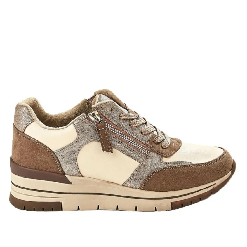 Baskets Femme Beige Avec Fermeture Éclair Scalina: Profitez D’Un Confort Inégalé En Choisissant Ces Baskets Beiges De La Marque Scalina. Cette Basket Aux Coloris Chaleureux Et Naturels Est Idéale Pour La Mi-Saison. On Adopte La Tendance Du Beige En Portant Cette Basket À Lacets Réhaussée D’Empiècements Marron Effet Suède.Pour Plus De Praticité, Elle Est Munie D’Une Fermeture Éclair Sur Le Côté Qui Vous Permet De L’Ouvrir Et De La Chausser Facilement. Plus Besoin De Défaire Vos Lacets : Un Gain De Temps Appréciable Pour Les Pieds Fatigués ! Pour Parfaire Votre Allure De Femme Décontractée, Ces Sneakers Disposent D’Une Semelle Crantée Qui A Le Double Avantage D’Être Tendance Et Adhérente. Le Tout, Monté Sur Un Talon Compensé De 3 Cm : Une Hauteur Parfaite Pour Assumer Vos Tâches Du Quotidien.