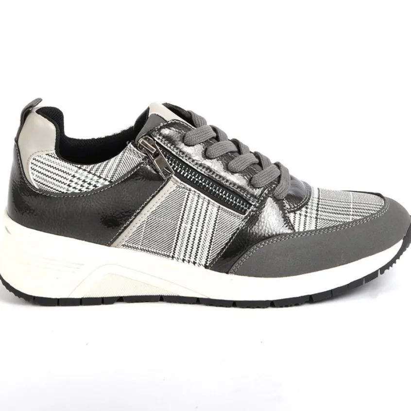 Baskets Sneakers Femme Avec Zip Pratique Sur Le Côté Scalina Gris: Grand Confort, Forme Largebaskets Sneakers Femme Avec Zip Pratique Sur Le Côté Confort, Marque Scalina, Coloris Gris, Dessus En Synthétique Et Textile, Doublure Textile, Semelle Intérieure Cuir, Fermeture Avec Zip, Semelle Élastomère.