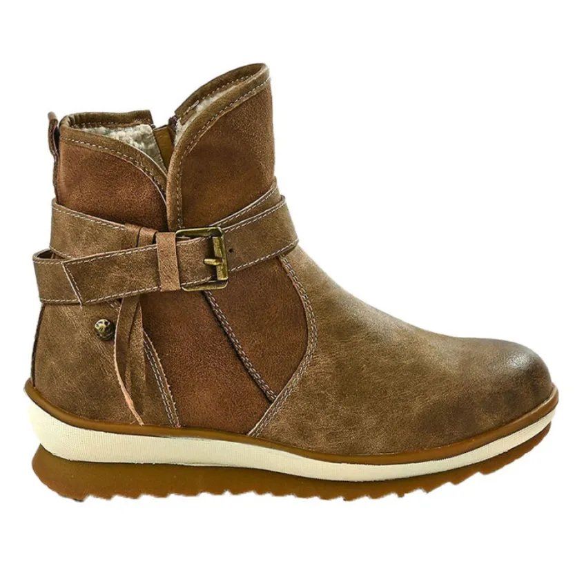Bottes Compensées Femme Scalina Beige: Grand Confort, Forme Largebottes Compensées Femme Confort, Semelles Crantées, Marque Scalina, Coloris Beige, Dessus En Synthétique, Doublure Fourrée, Semelle Intérieure Fourrée, Fermeture Avec Zip, Semelle Élastomère, Talon 3 Cm.
