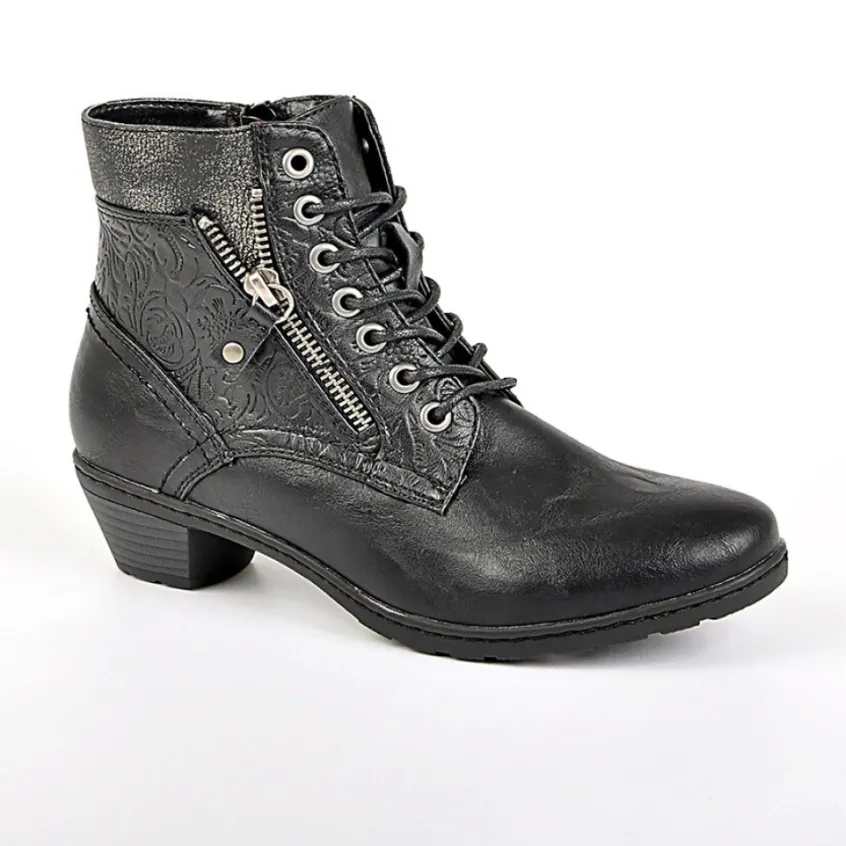 Bottines À Talons Bi-Matières Scalina Noir: Grand Confort, Forme Large Bottines À Talons Bi-Matières Femme Confort, Marque Scalina, Coloris Noir, Dessus En Synthétique, Doublure Textile, Semelle Intérieure Textile, Fermeture Avec Zip, Semelle Élastomère, Talon 3 Cm.