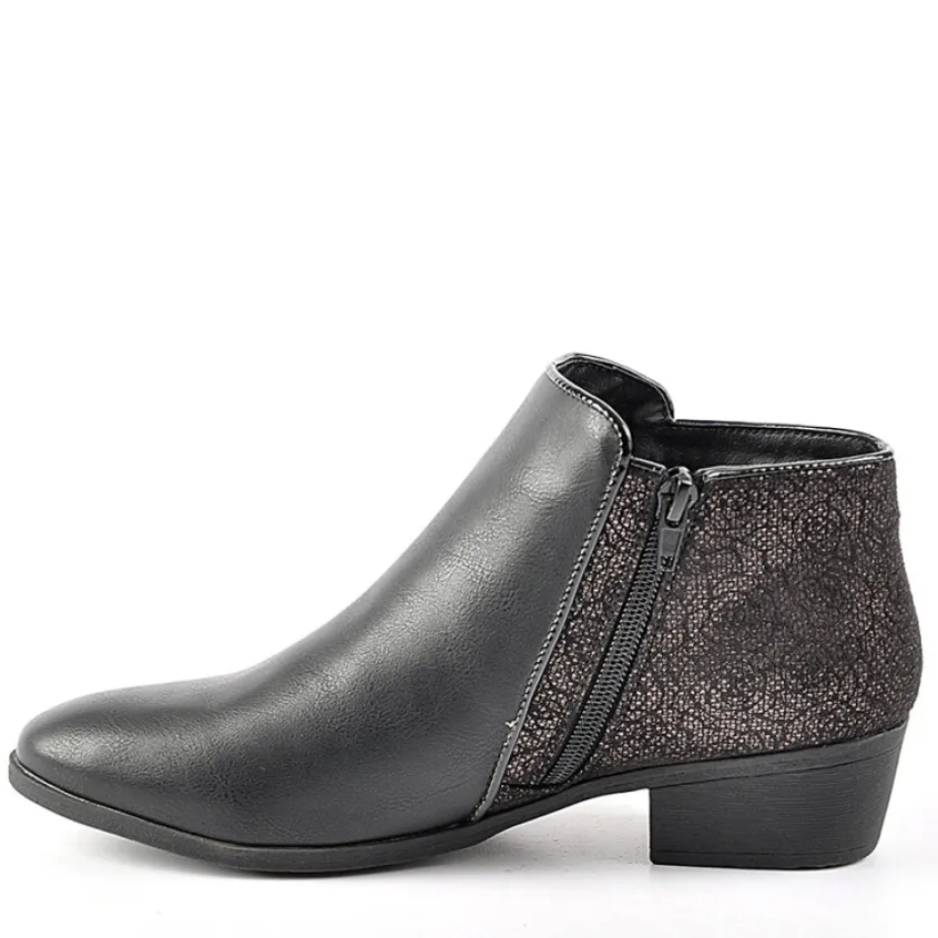 Bottines À Talons Bi-Matières Scalina Noir: Grand Confort, Forme Large Bottines À Talons Bi-Matières Femme Confort, Marque Scalina, Coloris Noir, Dessus En Synthétique, Doublure Textile, Semelle Intérieure Cuir, Fermeture Avec Zip, Semelle Élastomère, Talon 3.5 Cm.