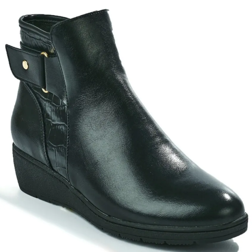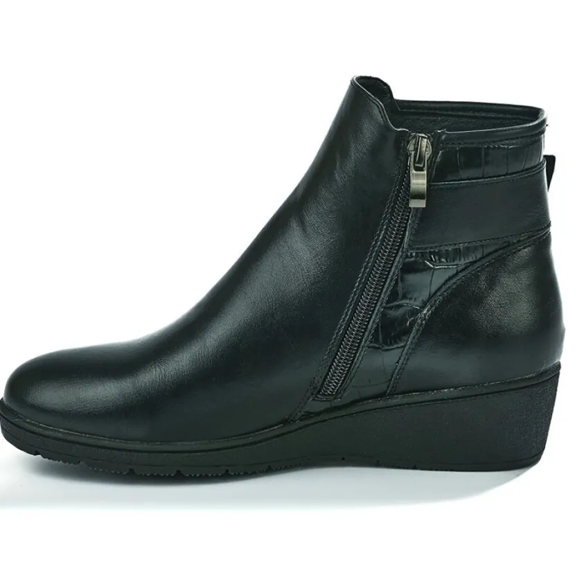 Bottines Compensées Femme Scalina Noir: Grand Confort, Forme Largebottines Compensées Femme Confort, Avec Effet Croco, Marque Scalina, Coloris Noir, Dessus En Synthétique, Doublure Textile, Semelle Intérieure Cuir, Fermeture Avec Zip, Semelle Élastomère, Talon 3.5 Cm.