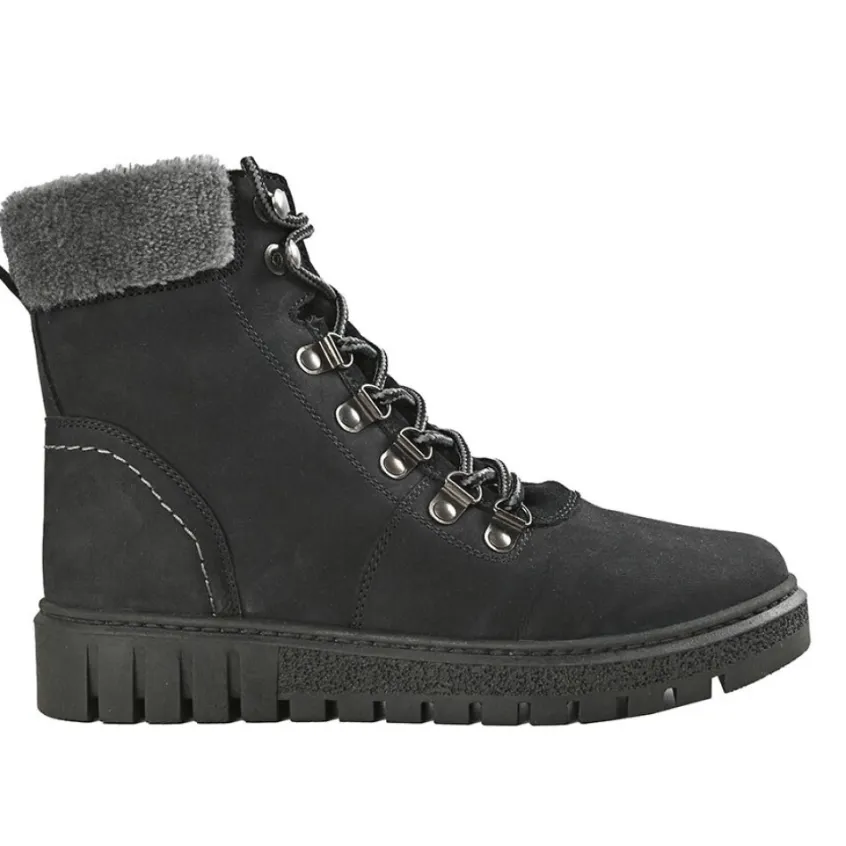 Chaussures Confort|SCALINA Bottines Femme En Cuir Noir Col Fausse Fourrure