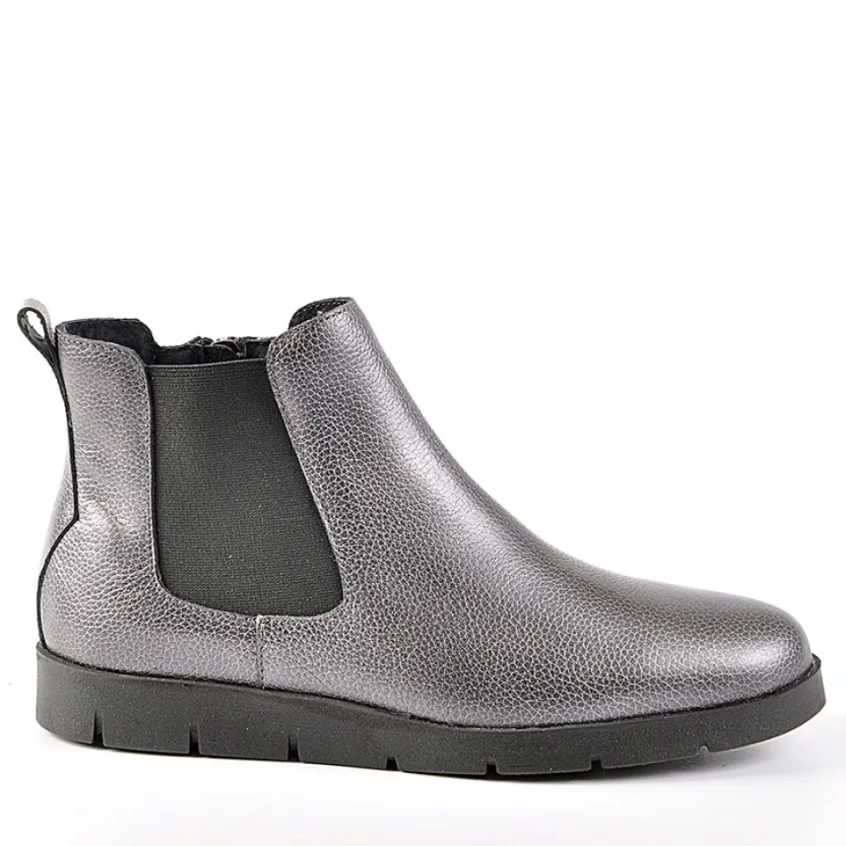 Bottines Plates Avec Élastiques Scalina Argente: Grand Confort, Forme Large Bottines Plates Avec Élastiques Femme Confort, Marque Scalina, Coloris Argente, Dessus En Cuir, Doublure Textile, Semelle Intérieure Cuir, Fermeture Avec Zip, Semelle Élastomère.