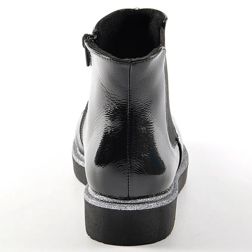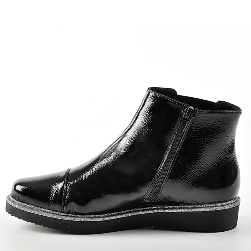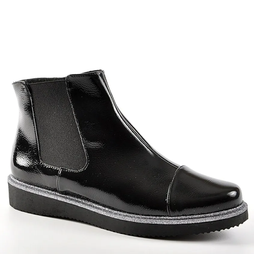 Bottines Plates Avec Élastiques Scalina Vernis Noir: Grand Confort, Forme Largebottines Femme Plates Avec Élastiques Confort, Marque Scalina, Coloris Vernis Noir, Dessus En Synthétique, Doublure Textile, Semelle Intérieure Textile, Fermeture Avec Zip, Semelle Élastomère, Talon 3 Cm.