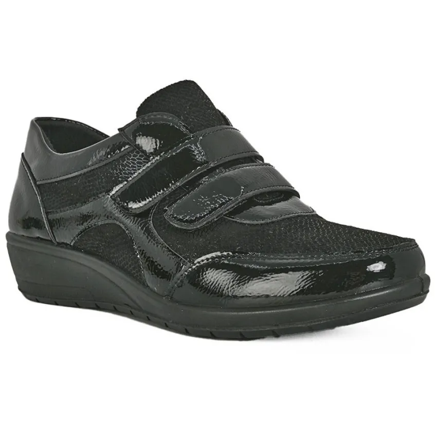 Chaussures Confort Femme Noir À Scratch Scalina: Grand Confort, Forme Large Chaussures Confort Bi-Matières Femme Confort, Marque Scalina, Coloris Noir, Dessus En Synthétique, Doublure Textile, Semelle Intérieure Cuir, Fermeture À Scratch, Semelle Élastomère, Talon 3 Cm.