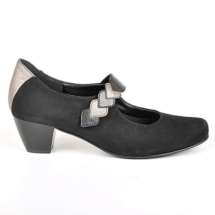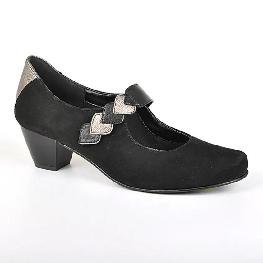 Escarpins À Lanières Femme Bi-Matières Noir Scalina: Pour Être Élégante De La Tête Aux Pieds, Rien De Tel Que Ces Escarpins Noirs Et Dorés. Que Vous Les Portiez Pour Un Mariage, Une Soirée Habillée Ou Encore Pour Une Tenue De Travail Distinguée, Ces Chaussures Se Démarquent Grâce À Une Lanière Originale Et Un Contrefort Doré. Ce Modèle De La Marque Scalina Présente En Plus Des Atouts Indéniables :Une Semelle Intérieure En Cuir D’Un Confort Optimal. Un Talon Carré De 5 Cm Pour Une Démarche Gracieuse. Une Fermeture À Scratch Pour Un Enfilage Rapide. Une Forme Large S’Adaptant À Tous Les Types De Piedsces Chaussures À La Matière Douce Rappelant Le Suède Sont Un Indispensable Pour Les Femmes Souhaitant Allier Élégance Et Confort.Caractéristiques : Dessus En Synthétique, Doublure Textile, Semelle Intérieure Cuir, Semelle Élastomère.