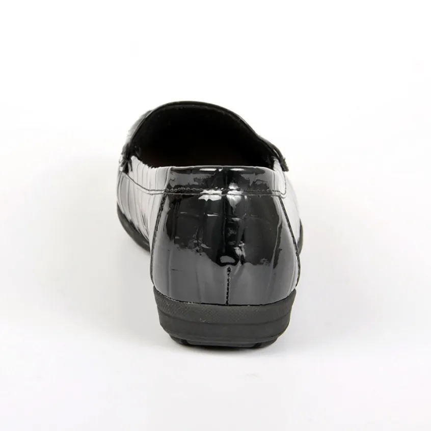 Mocassins Femme Avec Effet Croco Scalina Noir: Grand Confort, Forme Largemocassins Femme Avec Effet Croco Confort, Marque Scalina, Coloris Noir, Dessus En Synthétique, Doublure Textile, Semelle Intérieure Cuir, Semelle Élastomère, Talon 2 Cm.