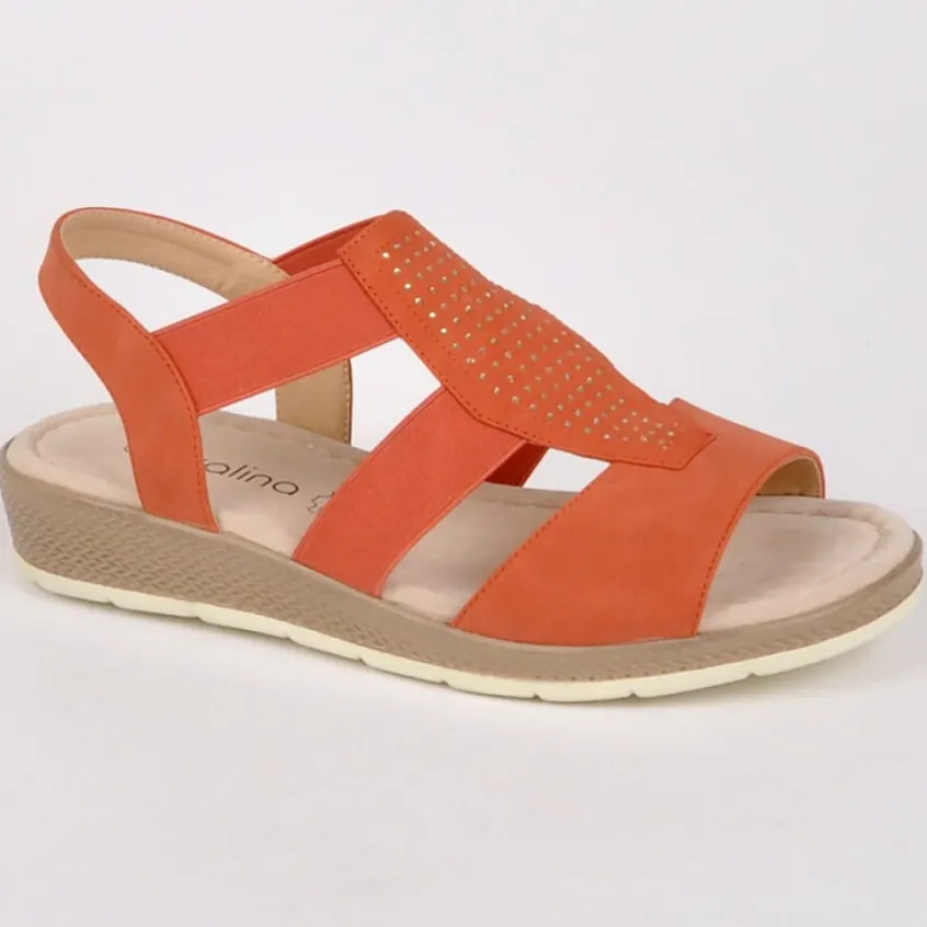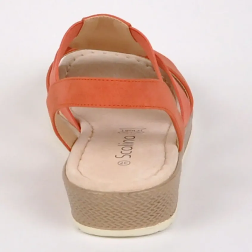 Sandales Compensées Femme Avec Strass Scalina Orange: Grand Confort, Forme Largesandales Compensées Femme Avec Strass Confort, Marque Scalina, Coloris Orange, Dessus En Synthétique, Doublure Synthétique, Semelle Intérieure Cuir, Semelle Élastomère, Talon 3 Cm.
