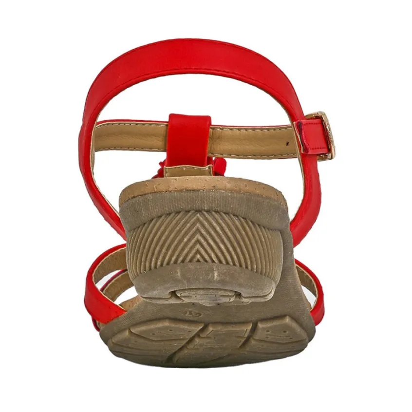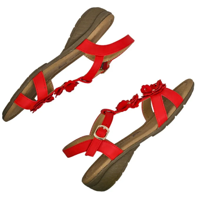 Sandales Confort À Talons Femme Rouge À Fleurs Scalina: Découvrez Un Niveau De Confort Et De Bien-Être Inégalé Grâce À Ces Délicieuses Sandales Rouges Conçues Par La Marque Scalina. Leur Point Fort : Une Semelle Intérieure En Cuir Moelleuse Et Respirante, Offrant Un Amorti Optimal. Cette Chaussure Estivale, Synonyme De Confort Absolu, S’Adapte Parfaitement Aux Pieds Les Plus Larges.Arborant Une Allure À La Fois Élégante Et Féminine, Cette Sandale Confort Au Talon De 3 Cm Est Ornée De Deux Fleurs Exquises Et De Délicats Clous Dorés. Vous Pourrez Vous Fier À Ce Nu-Pieds Souple Et Léger Pour Vous Assurer Un Maintien Parfait, Grâce À Sa Bride Réglable Au Niveau De La Cheville. Des Sandales Compensées Fleuries Et Colorées, Parfaites Pour La Saison Printemps-Été.Caractéristiques : Dessus En Synthétique, Doublure Synthétique, Semelle Intérieure Cuir, Semelle Élastomère, Talon 3 Cm.