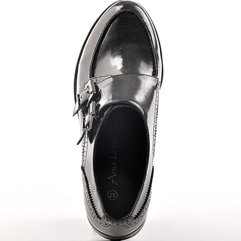Derbys Noir: Derbys Femme, Marque Ana Luna, Coloris Noir, Dessus En Synthétique, Doublure Textile, Semelle Intérieure Synthétique, Semelle Élastomère, Talon 3 Cm.