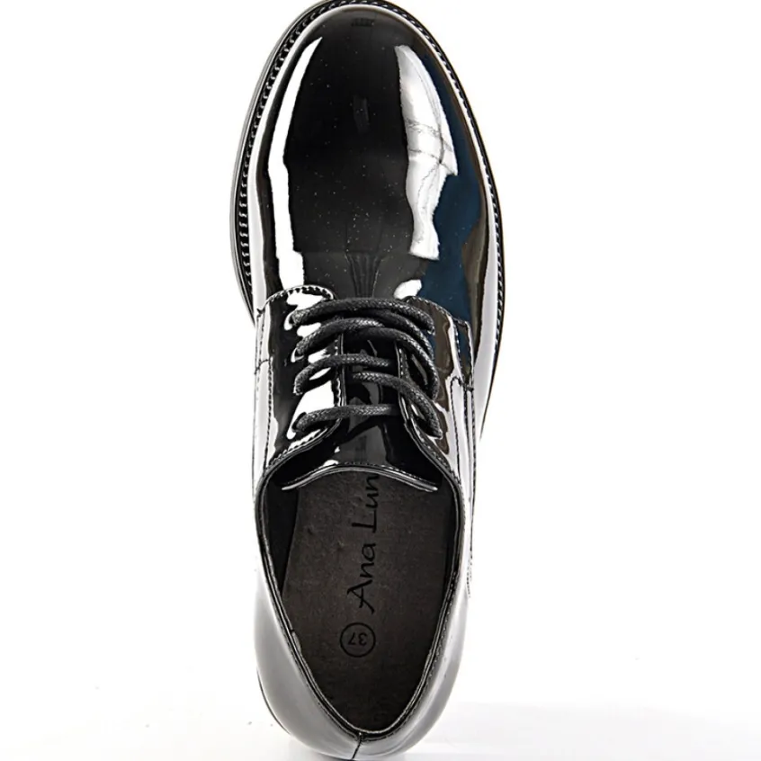 Derbies Femme Ana Luna Vernis Noir: Derbies Femme, Marque Ana Luna, Coloris Vernis Noir, Dessus En Synthétique, Doublure Synthétique, Semelle Intérieure Synthétique, Semelle Élastomère.