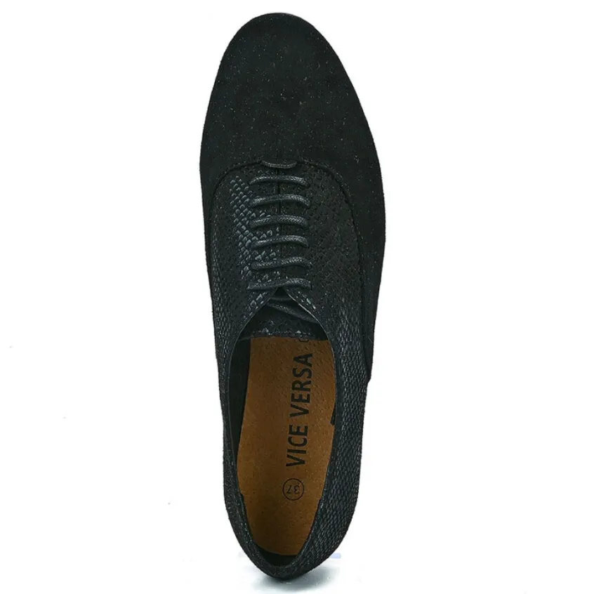 Derbies Femme Bi-Matières Vice Versa Noir: Derbies Bi-Matières Femme, Marque Vice Versa, Coloris Noir, Dessus En Synthétique, Doublure Synthétique, Semelle Intérieure Cuir, Semelle Élastomère.